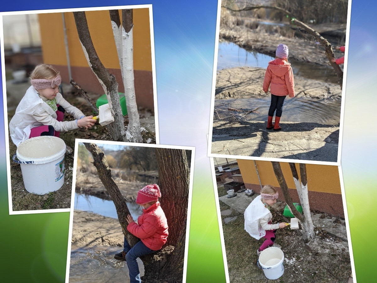 The weather here has finally become a little warmer. It looks like we will be above freezing now until fall. We know there can still be some cold days and even more snow (often in April and even occasionally in May), but it is nice to put away the thermal underwear! Warmer weather means time for some outdoor chores like painting the fruit trees. Even Kristina got to help out this year. It also means we get to take some walks in the park.